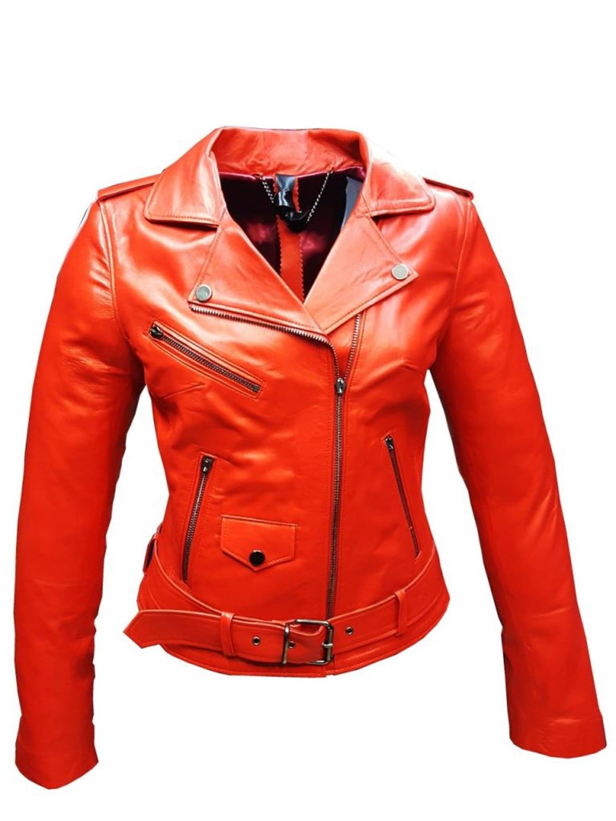 Hakiki Kuzu Derisi Kırmızı Cep Fermuarlı Kadın Ceket (461-2576)