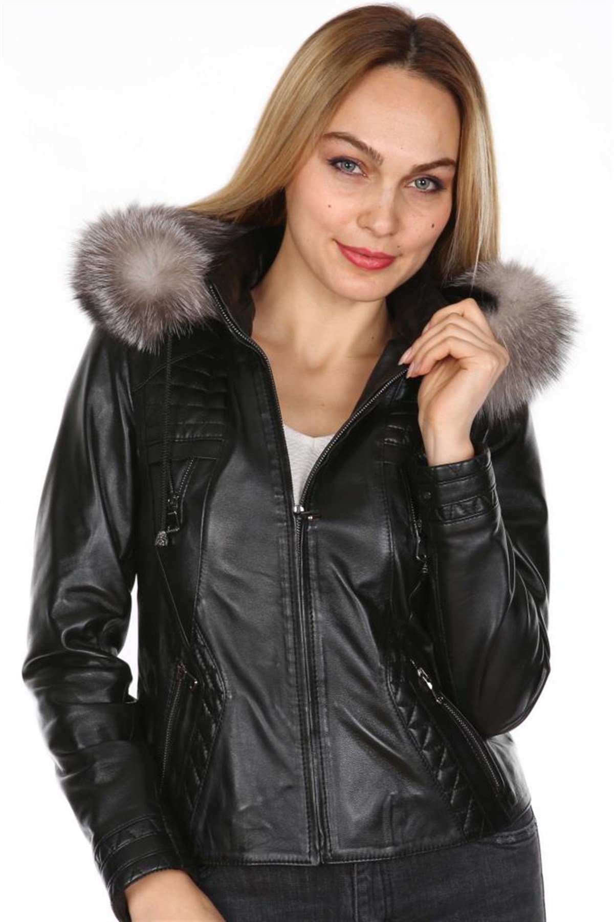 Hakiki Deri Siyah Kapşon Kürklü İşlemeli Kadın Deri Mont (b-123-36-1941)