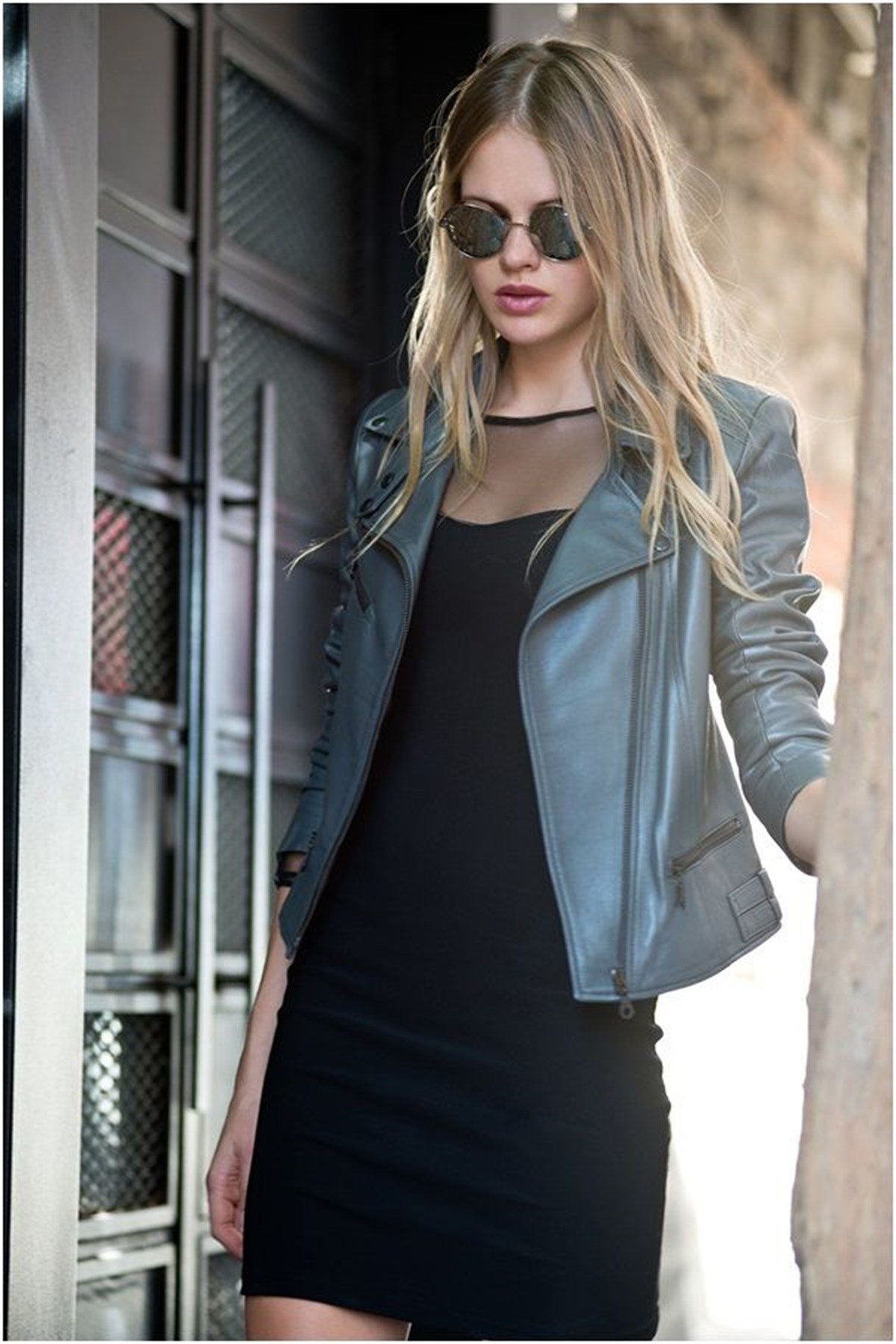 Hakiki Kuzu Derisi Siyah Çapraz Fermuar Kadın Ceket