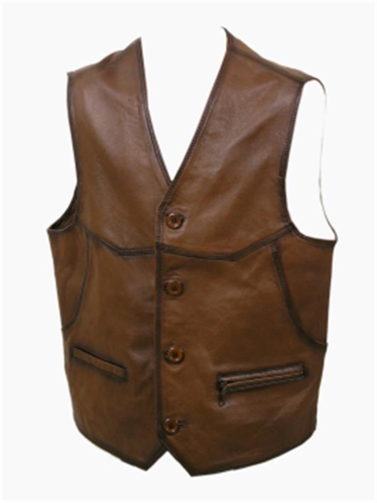Hakiki Deri Kahverengi Düğmeli Erkek Yelek (206-4286)